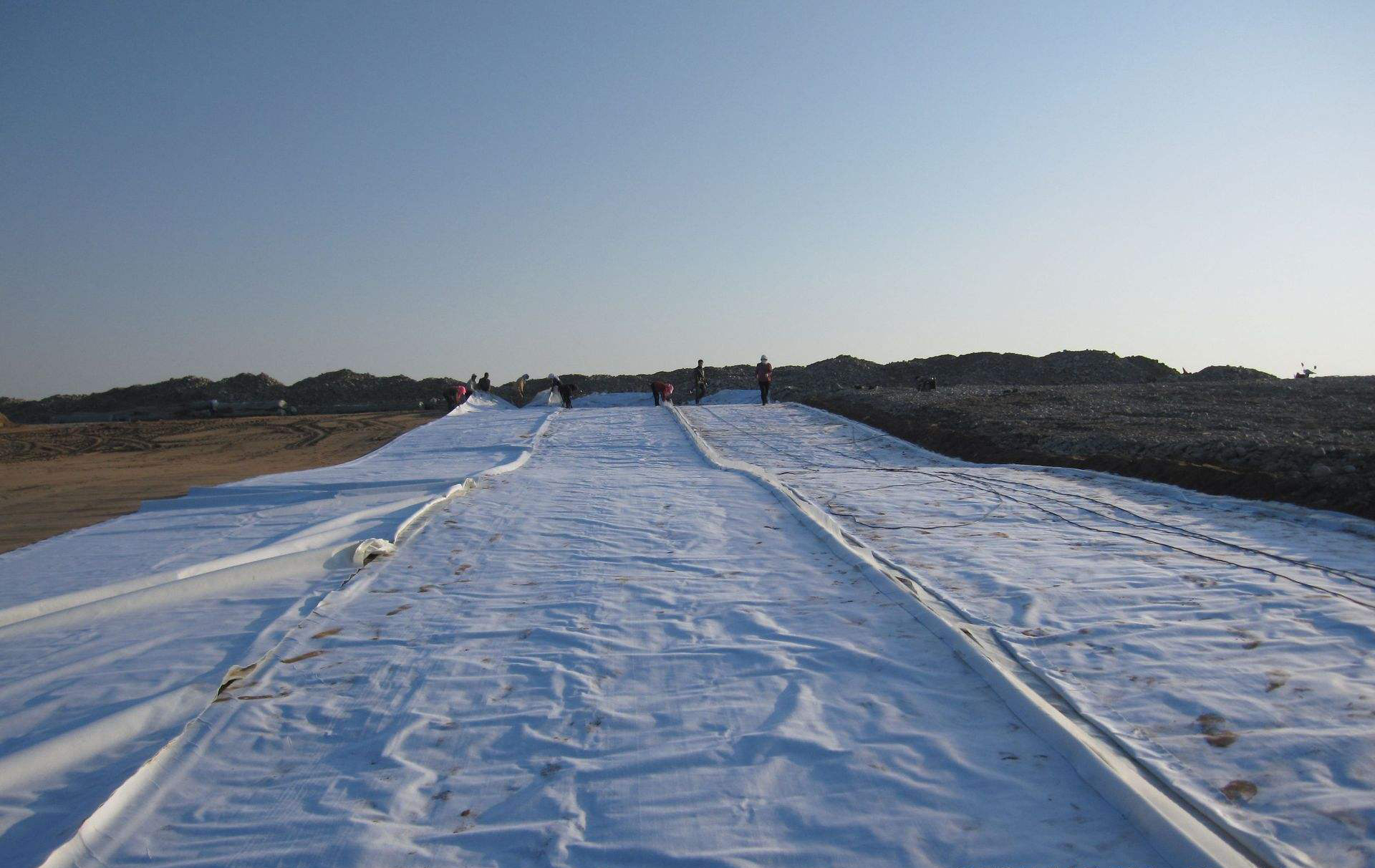 複合荔枝视频黄下载膜的鋪裝應張弛適當,以融入形變,防止應力和人為因素損害。為避免風刮損,在鋪裝期內全部的複合荔枝视频黄下载膜均用沙包或柔性吊物壓著,直到保護層厚度工程施工完已經。安全作業工作人員不可穿硬底真皮皮鞋及帶釘的鞋,禁止立即在荔枝视频黄下载膜上卸放混泥土邊坡防護預製構件塊,禁止在荔枝视频黄下载膜上敲擊石料和任何將會造成原材料毀壞的工程施工安全作業。荔枝视频黄下载膜的拚湊方法及鋼筋搭接長短應考慮工程圖紙的規定,並按工程圖紙規定設皺褶。